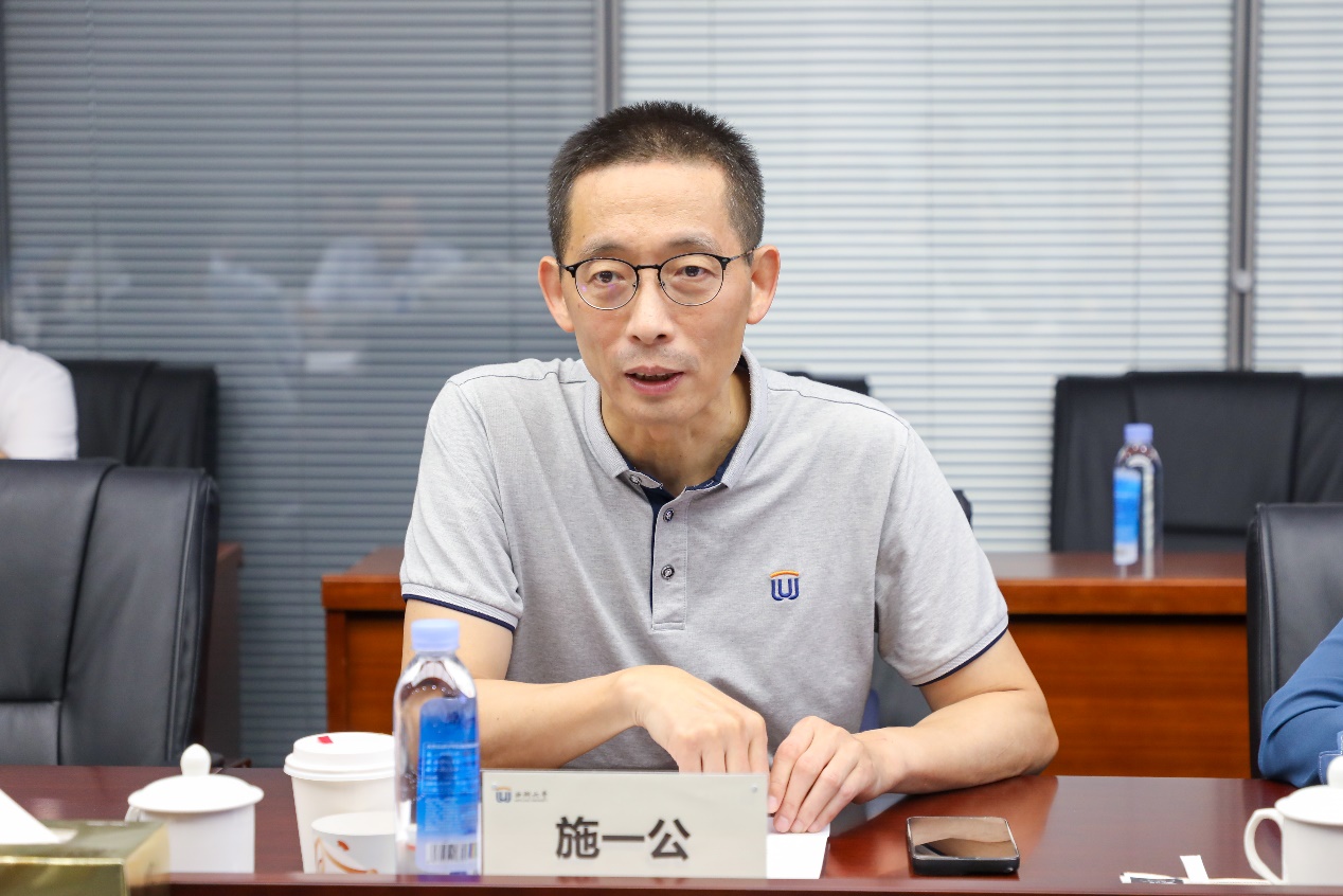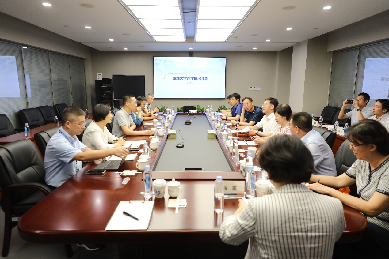 M. SHI a souhaité la bienvenue à M. WANG et à sa délégation. Il leur a présenté en détail l'histoire de l'Université du Lac de l'Ouest, l'état actuel de la formation et de la recherche, le système de gestion, le développement des disciplines et du personnel enseignant, la construction du campus, etc. Selon M. SHI, l'Université du Lac de l'Ouest se veut un établissement de haut niveau, de petite taille mais d'excellente qualité, et orienté vers la recherche. Elle vise à former des talents novateurs de haut niveau dotés d'un sens aigu des responsabilités sociétales, et s'attache à rassembler des enseignants de premier ordre, à s'illustrer dans les disciplines de pointe, à former des talents hors du commun, à produire des résultats exceptionnels, afin d'apporter sa contribution à la stratégie visant à redresser la nation par les sciences et l'éducation et à la stratégie de développement par l'innovation. M. Shi souhaitait que les deux établissements puissent profiter de cette occasion pour approfondir leurs échanges, mettre en place une coopération tous azimuts, diversifiée et régulière, et avancer la main dans la main pour contribuer à la recherche de pointe à l'échelle mondiale et au développement de la civilisation humaine.
