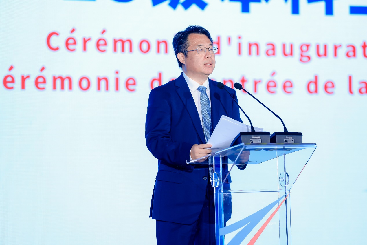 WANG Yunpeng, au nom de ZHAO Changlu, secrétaire du Comité du Parti de l'école, et du personnel enseignant et étudiant de toute l'école, a exprimé ses sincères félicitations aux nouveaux étudiants de l'Institut sino-français d'Aviation civile Beihang-ENAC et a chaleureusement accueilli les amis invités chinois et français présents à la cérémonie.