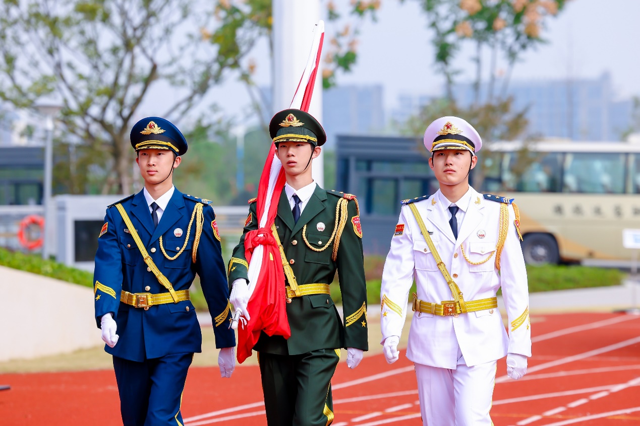 L'équipe de garde du drapeau national de notre institut a fait sa première apparition d'une façon étonnante, en escortant le drapeau rouge à cinq étoiles.