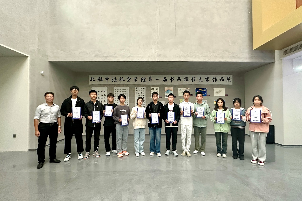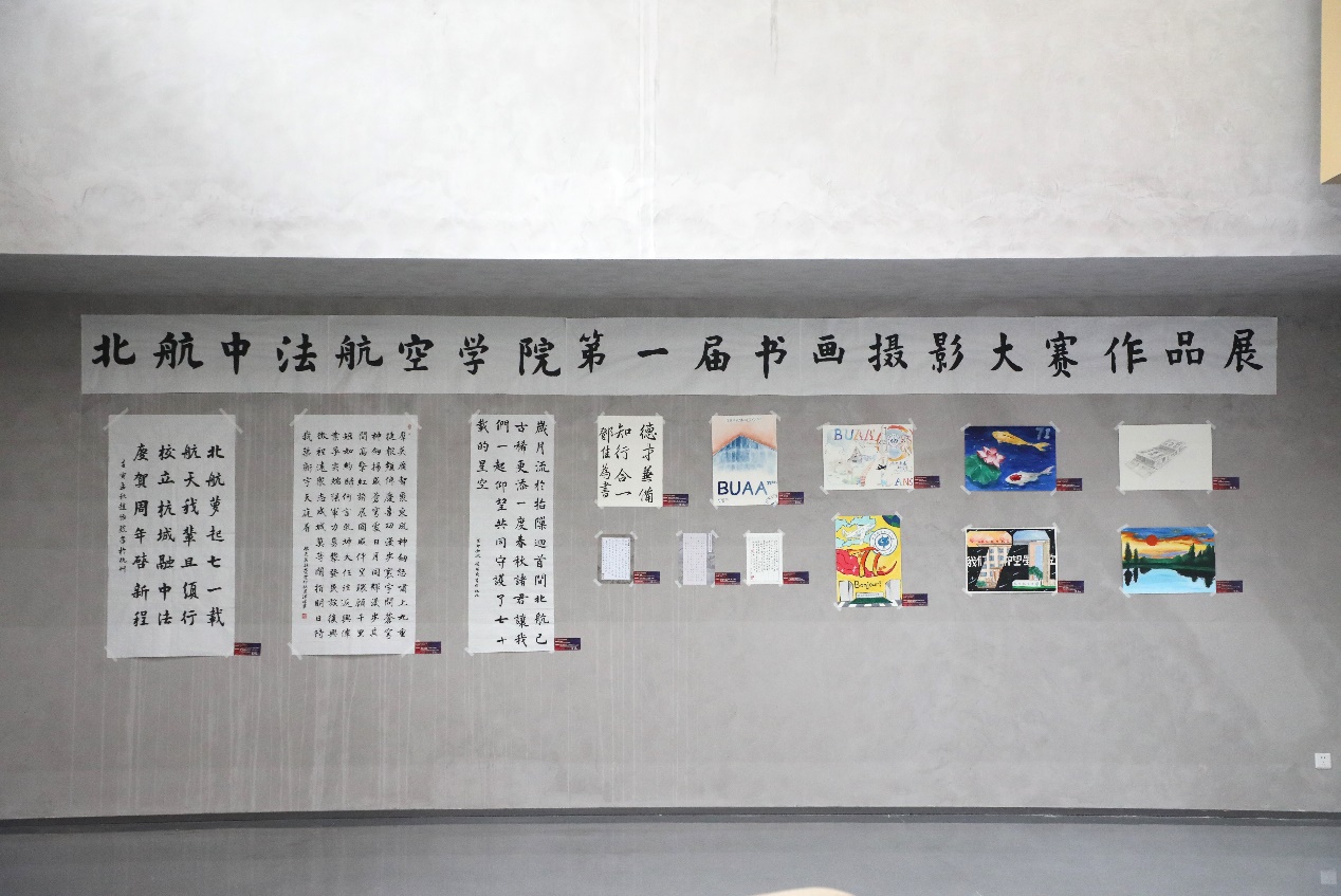 À l'occasion du 71e anniversaire de Beihang, le premier concours de calligraphie, de peinture et de photographie de l'Institut sino-français d'Aviation civile Beihang-ENAC, sur le thème « Le son dans la lumière, la rime dans l’encre » a été lancé. Dans la salle d'activités des étudiants, on a félicité avec les pinceaux le 71e anniversaire de Beihang, qui a de nobles aspirations pour servir la patrie par l'aérospatiale. On a peint des peintures du campus international de Beihang (Hangzhou). Sur les routes bordées d’arbres, on a pris des photos pour capturer le paysage du coucher de soleil et l'atmosphère humaniste du campus. Le concours a reçu près de 100 œuvres de calligraphie, de peinture et de photographie, et 38 œuvres se sont distinguées lors du vote conjoint de tous les enseignants et étudiants. Dans l'après-midi du 25 octobre, la directrice HONG Guanxin et d'autres dirigeants du collège ont remis les prix aux étudiants gagnants.