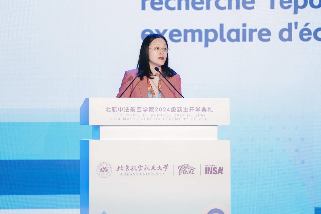 Dans son discours, Mme LAN Jingjing a chaleureusement accueilli les invités venus de loin. Elle a souligné que la province du Zhejiang et la France entretiennent une longue histoire de coopération dans le domaine de l'éducation. Depuis plus d'un an, l'Institut sino-français d'Aviation Civile Beihang-ENAC (ZFAI) a effectué un travail remarquable en matière d'intégration sino-française, tout en mettant en avant ses caractéristiques spécifiques. Elle exprimait le souhait que les étudiants gardent à l'esprit leur vocation à servir le pays par l'aviation, qu'ils assument courageusement la mission de faire de la Chine une grande puissance aéronautique et qu'ils s'efforcent de concrétiser leurs aspirations personnelles.