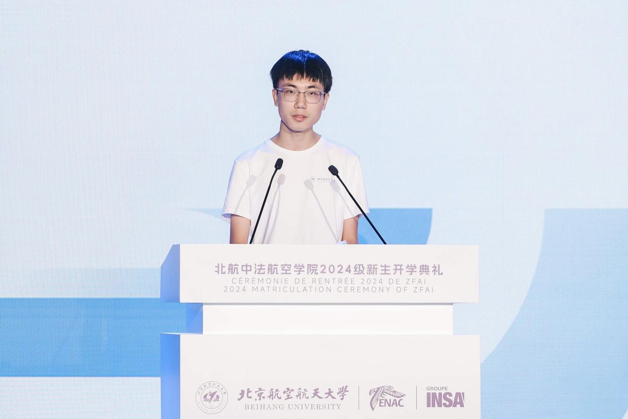 WU Yitong, représentant des étudiants de premier cycle de la promotion 2024, a partagé ses impressions et ses expériences depuis son entrée à l'université. Il a également exprimé son enthousiasme de commencer une vie universitaire qui s'annonce enrichissante et diversifiée. Il a encouragé ses camarades à viser l'excellence académique, à faire preuve de courage en explorant l'inconnu, à oser innover dans la pratique, à travailler assidûment pour répondre aux exigences requises, dans le but de devenir des ingénieurs exceptionnels dotés d'une pensée innovante et d'une vision internationale.