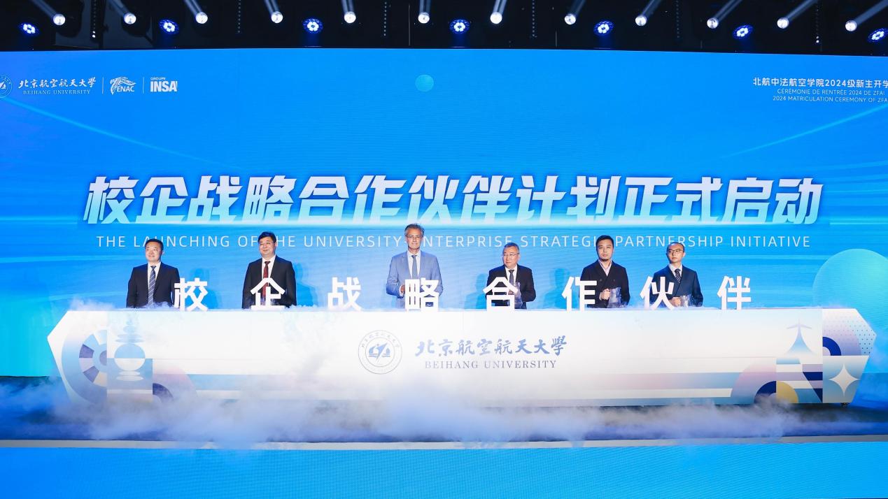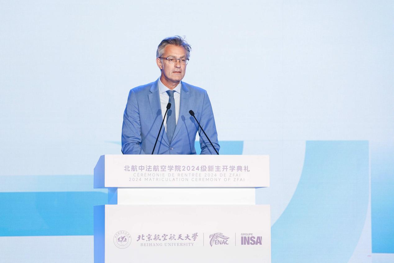 Samson KHAOU, vice-président de Dassault Systèmes Asie-Pacifique, a adressé ses félicitations aux nouveaux étudiants au nom des entreprises. Selon lui, l'industrie aéronautique intègre l'innovation, la science et la technologie. Dassault Systèmes s'est investi dans le domaine de l'aéronautique et de l'espace depuis plus de 30 ans et a créé en collaboration avec l'Institut le Centre d'Excellence Éducative Sino-Français. Dans l'avenir, Dassault Système souhaite avancer ensemble avec Beihang, l'ENAC et le Groupe INSA pour promouvoir de manière proactive les programmes de formation et de recherche en aéronautique et repousser les limites de l'imagination humaine.