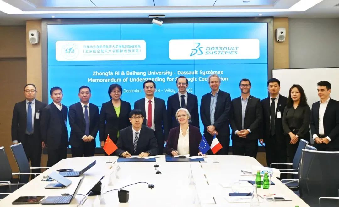 Le 10 décembre, la délégation de l’Université Beihang s’est rendue au siège de Dassault Systèmes, où elle a visité la plateforme 3DEXPERIENCE. WANG Yunpeng et Grégory ABATE, secrétaire général de Dassault Systèmes, ont ensuite assisté à la signature du mémorandum d’entente sur le partenariat stratégique entre les deux parties. Lors de cette rencontre, WANG Yunpeng a indiqué que la coopération entre l’Université Beihang et Dassault Systèmes présente de belles perspectives. Il a aussi exprimé le souhait qu’à l’avenir, les deux parties aboutiront à une collaboration plus approfondie en s’appuyant sur la construction conjointe d’une plateforme de recherche et d’éducation numérique et d’un centre d’innovation sur le campus international de Hangzhou. Les efforts communs se concentreront sur des domaines tels que le métavers industriel, l’IA, la simulation, la médecine numérique, les circuits intégrés et l’économie de basse altitude. Les deux parties envisagent également d’organiser conjointement des conférences et événements importants à l’échelle internationale, tels que le forum sur la sécurité aérienne et l’aviation civile intelligente, le forum de l’Alliance asiatique de simulation et les événements sur la modélisation et la simulation de systèmes. L’Université Beihang et Dassault Systèmes œuvreront ensemble pour favoriser la transformation numérique de l’éducation et de la recherche sur le campus international de Hangzhou tout en explorant de nouveaux modèles de gestion de bibliothèques et faisant de « 1 plateforme + 1 centre » en une plateforme de coopération scientifique et éducative de portée internationale.
