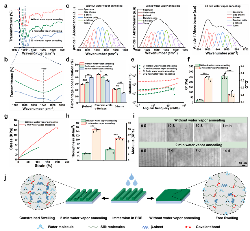 Afin de stabiliser la structure du revêtement à micro-rainures SFMA après absorption d'eau, l'étude a adopté un processus de traitement thermique à la vapeur d'eau. Comme le montre la Figure 2, par rapport au revêtement à micro-rainures non traité, la structure secondaire du revêtement à micro-rainures SFMA après traitement à la vapeur d'eau change, ce qui entraîne une amélioration significative de ses propriétés mécaniques et sa stabilité structurelle.