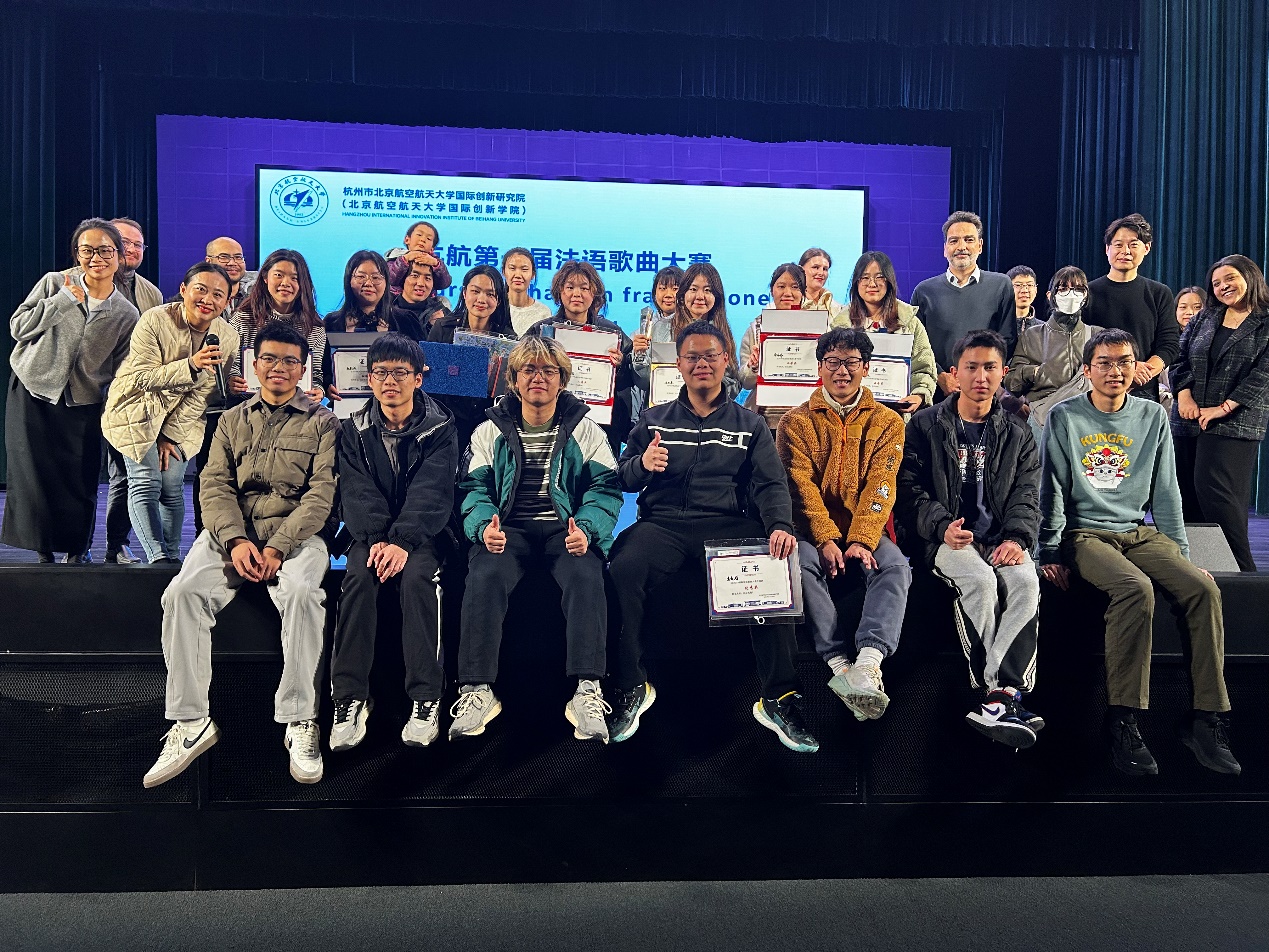 La victoire de CAI Yufei et de CHEN Xingguo à la demi-finale Zhejiang du concours est le fruit de leur talent et de leurs efforts, mais aussi le reflet de l’environnement d’enseignement international que le campus de Hangzhou de l’Université Beihang s’efforce de bâtir à travers sa coopération sino-étrangère. Pour l’année scolaire 2024-2025, l’équipe d’enseignement du français de l’Institut international d’innovation de l’Université Beihang à Hangzhou n’a pas seulement organisé le premier concours de chanson francophone, elle a aussi animé plusieurs activités extrascolaires dans le cadre du « Café français », telles que le « Café des discussions », le « Club de doublage », le « Club littéraire » et les « Projections cinématographiques ». Ces événements, à la fois ludiques et instructifs, offrent aux étudiants un environnement d’apprentissage agréable qui leur permet de progresser rapidement en français. Nous sommes convaincus que cette approche pédagogique riche et variée renforcera efficacement leurs compétences linguistiques, tout en approfondissant leur compréhension culturelle et en développant leur vision internationale.