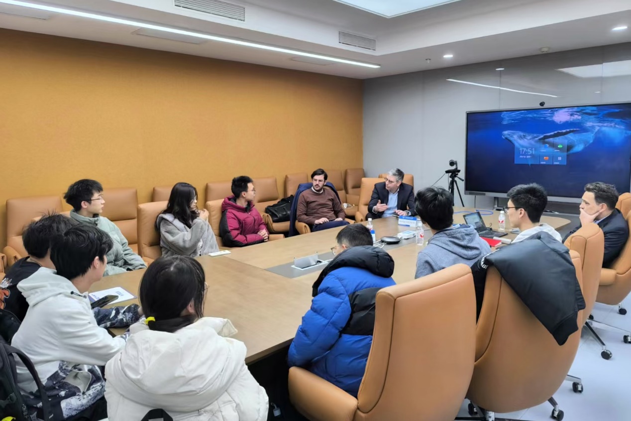 Après le séminaire, le vice-président Nicolas CAZALIS a échangé directement avec des représentants étudiants des promotions 2023 et 2024. Il a chaleureusement interrogé les étudiants sur leur quotidien académique, écouté leurs suggestions concernant les cours et les méthodes d’enseignement. Les étudiants ont activement pris la parole et abordé avec lui plusieurs sujets, notamment les opportunités d’échange en France, l’adaptation à l’enseignement en français et l’articulation des cours spécialisés.