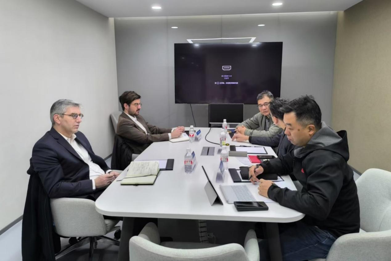 DONG Zhuoning, directeur de l’Institut international d'innovation de l’Université Beihang à Hangzhou, Frédéric GENTY, directeur français de l’Institut sino-français d’aviation civile Beihang-ENAC, ZHANG Wei, directeur adjoint de l’Institut international d'innovation de l’Université Beihang à Hangzhou, et CHEN Chao, directeur du Bureau des affaires internationales, ont rencontré la délégation dirigée par Nicolas CAZALIS. DONG Zhuoning a souhaité la bienvenue aux invités au nom de l’institut et a indiqué que cette rencontre permettrait d’optimiser le mécanisme de coopération entre les deux universités, de faire progresser les projets clés et de poser une base solide pour un développement de qualité de l’Institut sino-français dans sa prochaine phase. Les deux parties ont exprimé leur volonté de profiter de cette visite pour assurer des avancées concrètes avant la réunion du comité de gestion conjoint prévue en juillet, et ainsi hisser les travaux de l’Institut sino-français à un nouveau niveau.
